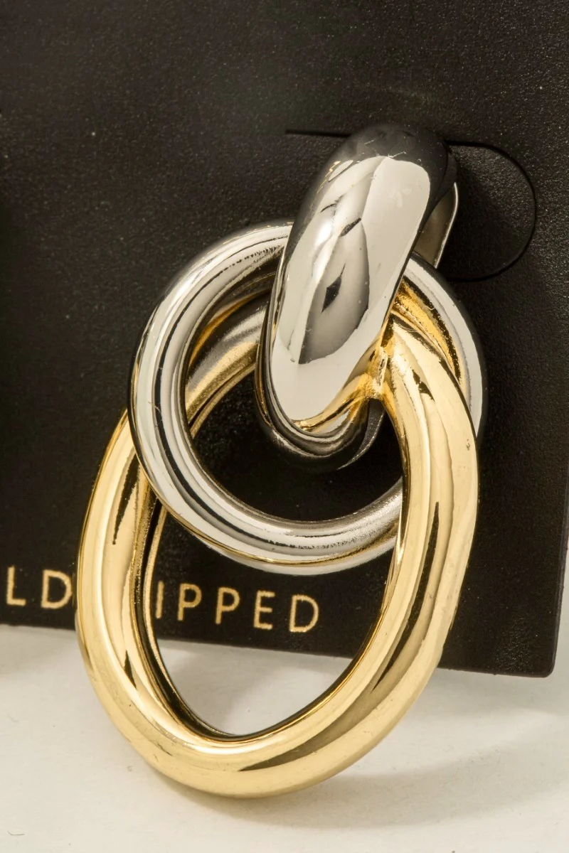 ADORN Ghislaine Two Tone Oval Hoop Door Knocker Earrings