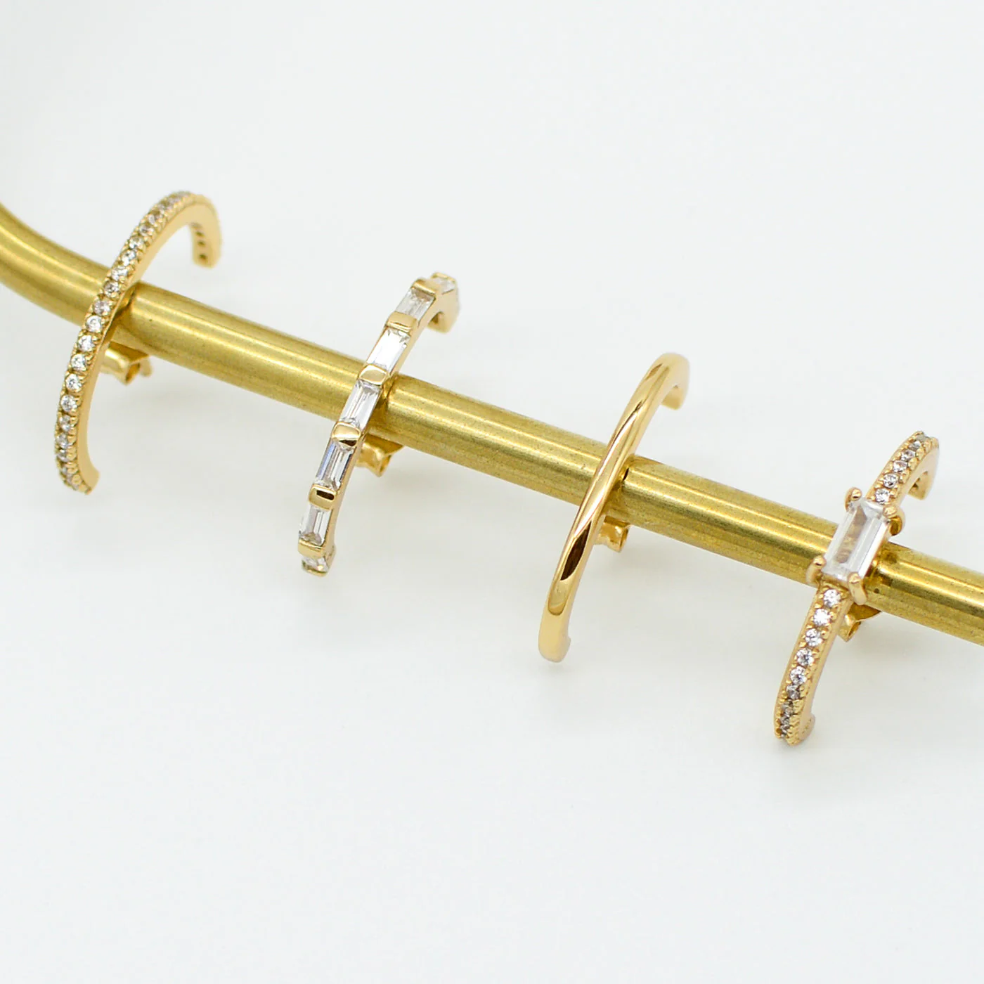 14k yellow gold plated ear suspender with baguette CZ stones.