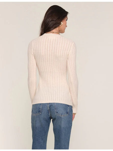 The Lovett Top is a Heartloom staple. It's made from a soft yarn and a pointelle stitch. It features a flattering, v-neck and an asymmetric button placket.