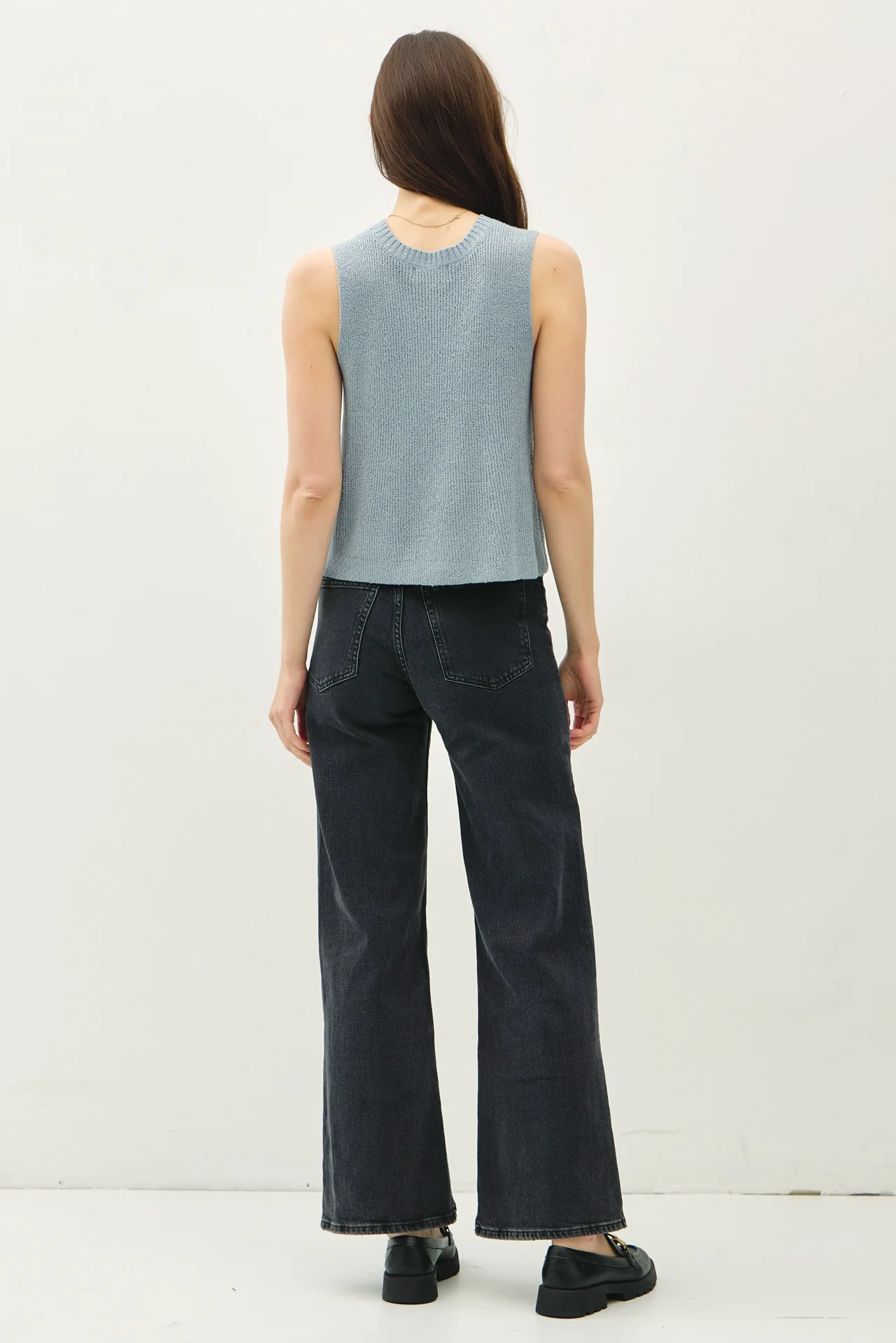 Introducing the NYLAND Evani Sweater Vest — a refined, lightweight layering essential that blends the comfort of a sweater with the versatility of a vest. Crafted as a sweater tank top with a ribbed neck, a clean edge, and a flattering V-neck, it's designed to elevate both casual and dressier outfits.