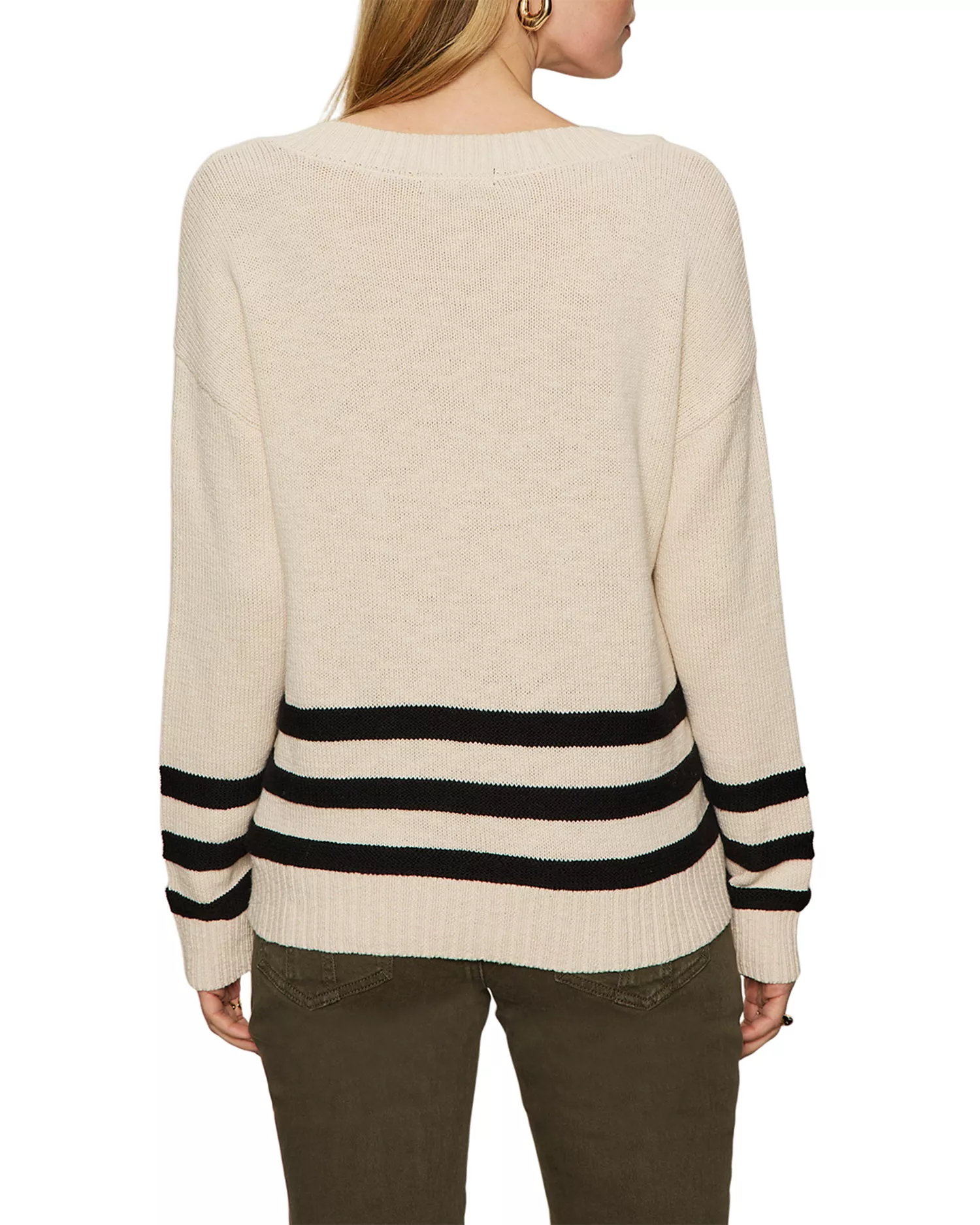 - Knit stripes at lower sleeves and lower body